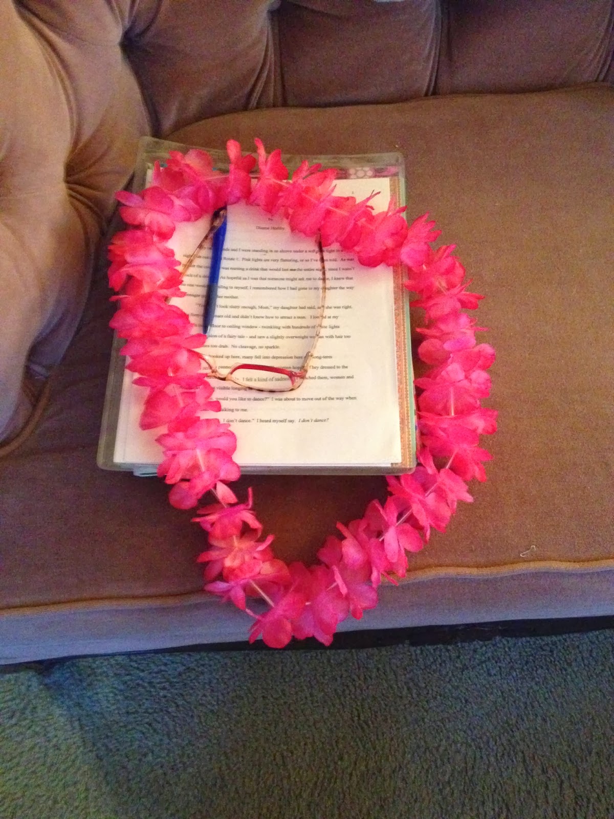 A sweet daydream I've had throughout my adult life has been to step off a plane in Hawaii and have a lei placed around my neck. I've seen that in movies and have always thought it magical, so as I walked into the banquet hall at Crimebake this year, and a pink lei was placed around my neck, it did feel magical. Some people can't sit down to write without their coffee, a special hat or even a stuffed animal sitting atop the computer. Well, I have a pink lei! I wear it when I write and since November have felt lost without it, so thank you, to the Crimebake committee for choosing a tropical theme for our banquet this year.A few days ago, I looked at some of my short stories and a few chapters of a novel I'm writing. Maybe it was my frame of mind, maybe my stories aren't half bad, but I've decided to give it the old college try - again. I made a list of the steps I need to take in order to get published and began taking those steps, because as the saying goes, if not now, when?